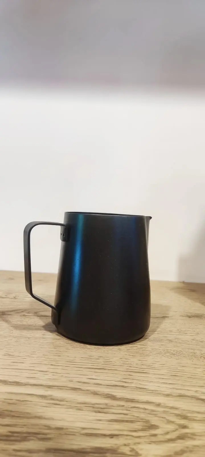 Jarra cremadora en acero inoxidable negra, capacidad de 600ml, especial para latte art.